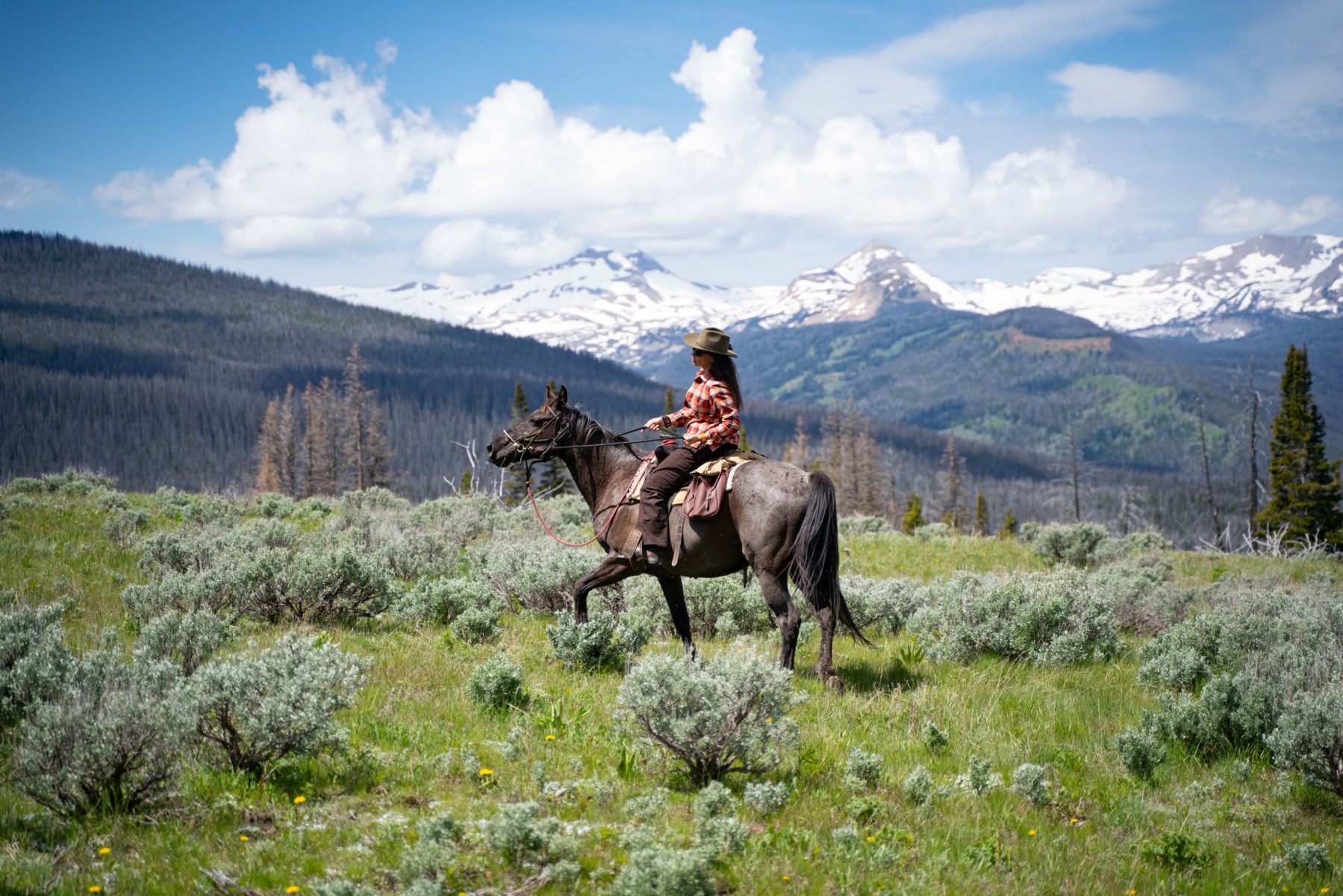 World class hiking is accessible directly from our porch, whether you desire a simple sojourn across the meadow or a day-long endeavor that takes you to ridgelines with unparalleled views. Trails from the ranch lead to remote peaks, glacial lakes, and alpine meadows, taking you over hidden mountain passes and along roaring rivers.